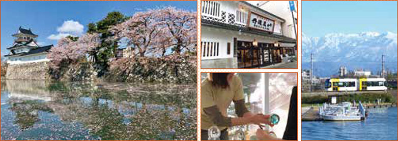 富山市は、県の中央部からやや東寄りに位置し、人口は約41万人で「くすりとガラスのまち」といわれています。売薬では300年以上の歴史があり、「越中富山の薬売り」という呼称は、全国に広がっておりいちどは聞いたことがあるのではないでしょうか。また売薬にともないガラス製薬瓶の製造を由来としたガラス造形も盛んにおこなわれています。市内には、「ガラス美術館」をはじめ、江戸時代から続く富山の薬売りの文化を体験できる「池田屋安兵衛商店」、また定番の観光スポットである富山城など、こちらも観光要素が高い路面電車に乗って訪れることができます。(写真提供・富山市観光協会)