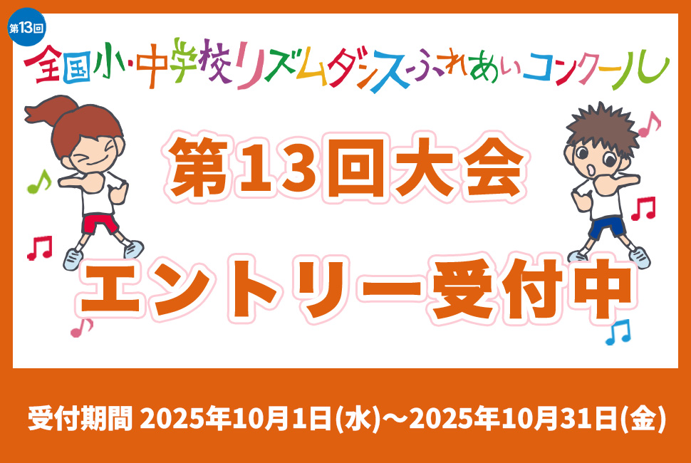 皆さんは今、第13回 全国小・中学校リズムダンスふれあいコンクール全国大会出場に向けて、自分たちのダンスに磨きをかけていることと思います。